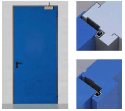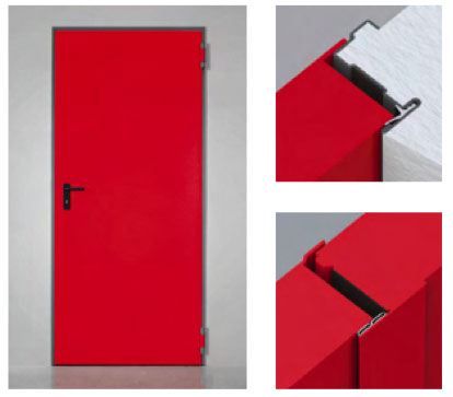 Porta tagliafuoco metallica, interamente zincata e verniciata nei colori RAL, telaio realizzato con profilo di notevole robustezza, ideale per porte di grandi dimensioni o in caso di applicazione su pareti inconsistenti.